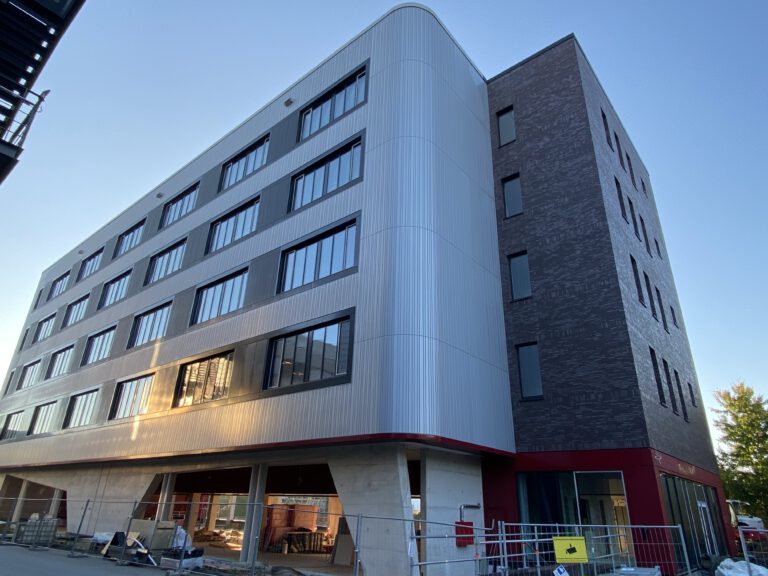 Im Rahmen des Projekts realisiert FFiXX Montageservice rund 2.000 Quadratmeter Pfosten-Riegel-Fassaden mit etwa 200 integrierten Fenstern und Türen. Ergänzt wird die Ausführung durch elegante Ganzglasgeländer sowie ca. 2.500 Quadratmeter hochwertige Holzverkleidungen.